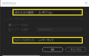 (2)読み込みの種類「コンポジション」、フッテージのサイズ「レイヤーサイズ」でOK