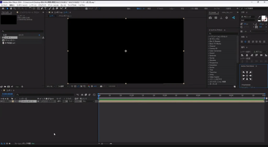 🚨注意:下のおすすめAeレイアウトの右下にある「Anchor Point Mover(アンカーポイントムーバー)」は、課題10でインストールするアニメーションコンポーザーの内容です。その他、講座を進めていくと出てくるパネルを下の画像に含まれています。