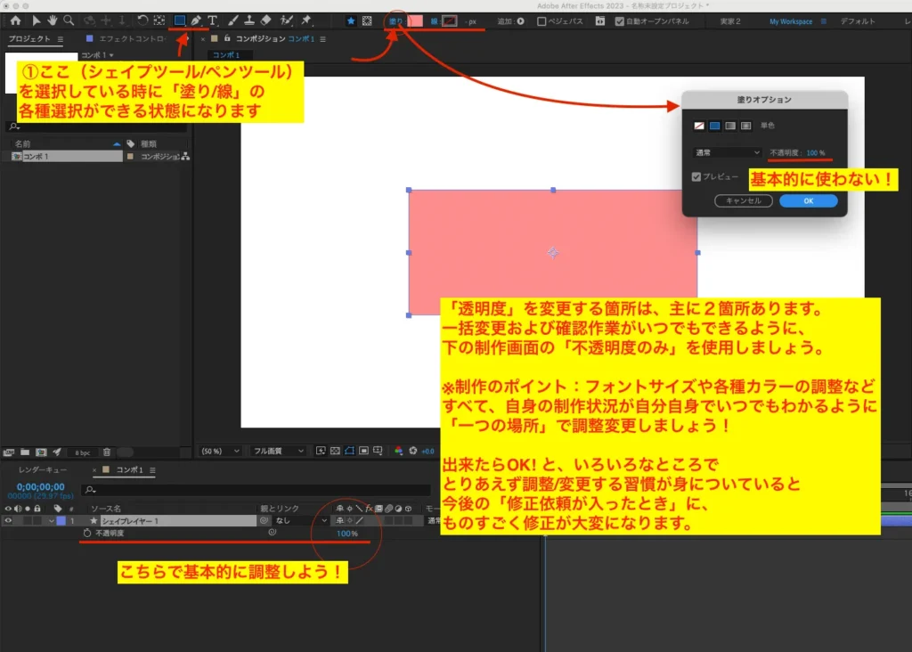 1 基本設定、コンポジション作成、ワークスペース作成について
