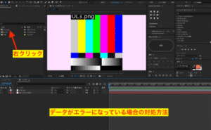 ダウンロードした「(参考動画を制作した)解答用Aeデータ」に、下記のようなエラー表示がある場合の対処方法はココで解決!
